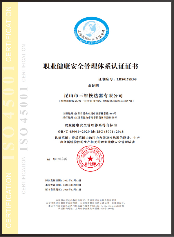 昆山市三維換熱器有限公司注冊資本5000萬元,資產2.1億元,公司地址位于江蘇省昆山市周市鎮蕭林東路3898號,法人代表為顧安生,公司設有技術部、生產部、檢驗部。
